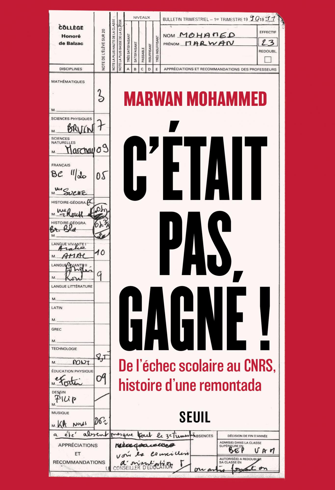 Marwan Mohammed est aujourd’hui un sociologue connu et reconnu. Pourtant, « c’était pas gagné ! », comme le répète souvent sa mère. Son milieu modeste, son lourd échec scolaire, son orientation en filière « pro » : rien ne le destinait à une brillante carrière universitaire. C’était pas gagné ! fait le récit des petites victoires, des rencontres déterminantes et des stratégies - pas toujours inspirées — qui lui ont permis de surmonter ce mauvais départ et de lancer cette remontada. En mêlant les concepts de la sociologie à des métaphores footballistiques, l’auteur raconte ainsi sa jeunesse « au quartier », ses efforts pour « apprendre à devenir étudiant », ses engagements associatifs et sportifs, ses combats intellectuels...
